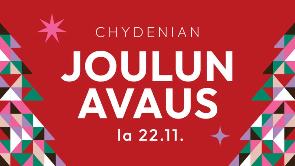 Tervetuloa viettämään kanssamme Kauppakeskus Chydenian joulunavausta lauantaina 22.11.2025. Tule kanssamme virittäytymään jouluiseen tunnelmaan!