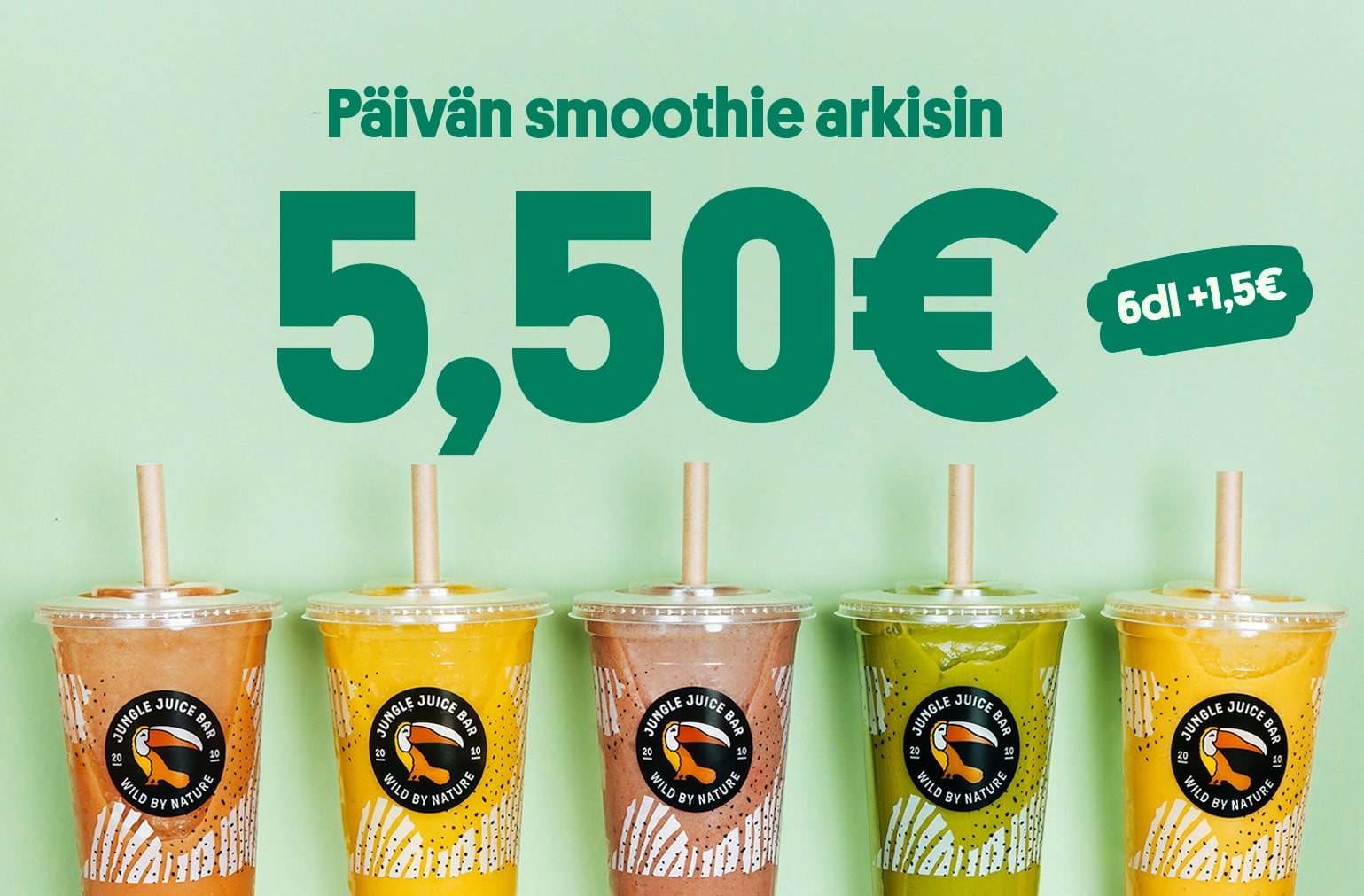 Tarjous koskee normaalikokoista päivän smoothieta 4dl 5,50€! 6dl +1,5€ 🍋